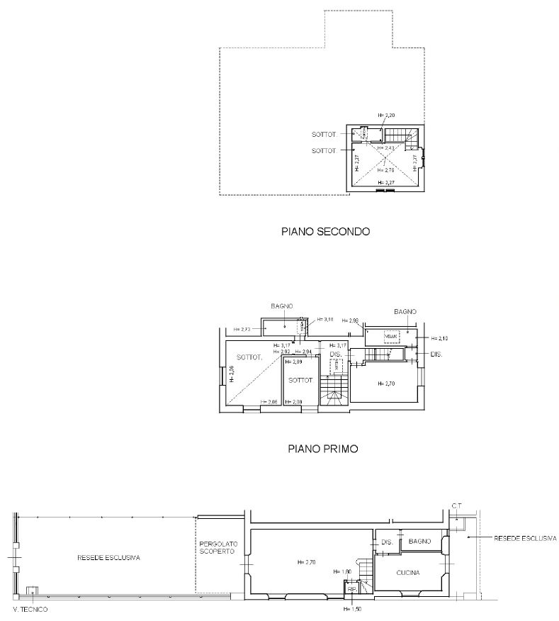 Distribuita su due piani fuori terra ed uno mansardato, si compone di : cucina con portafinestra sul piccolo resede retrostante, un grande soggiorno pranzo ed un bagno a doccia al piano terreno.